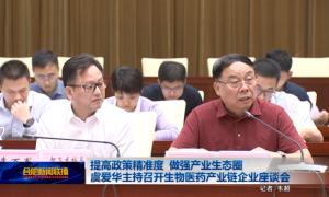 2024-03-26虞爱华主持召开生物医药产业链企业座谈会提高政策精准度 做强产业生态圈9月12日下午,省委常委、市委书记虞爱华主持召开生物医药产业链企业座谈会,听取企业意见建议,研究解决具体问题。省卫健委副主任崔礼军,省药监局局长马旭升,市领导张泉、袁飞、宋道军,部分